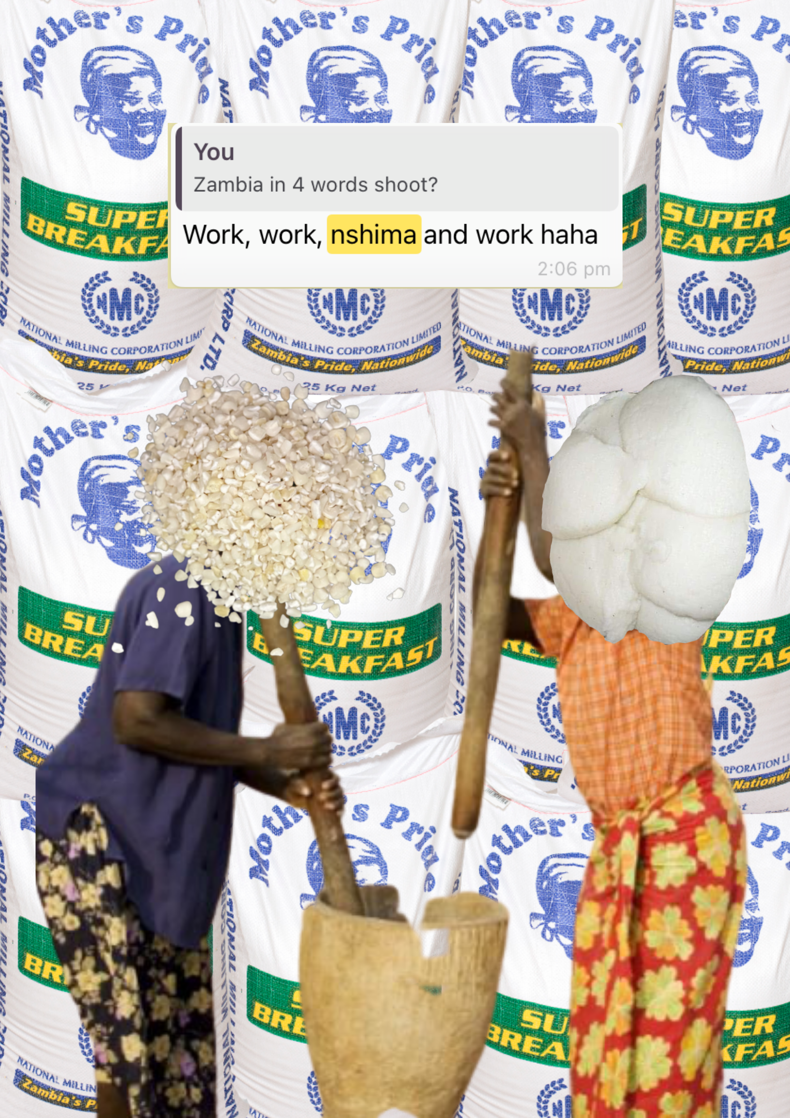 Kutwa refers to the traditional process in which Tonga women would gather in groups in order to share not only in the labour of pounding their harvested crops, like maize, in mortars but further embody the process of sharing in not only the material but the immaterial which assume the form of dialogue, ritual, storytelling and song.